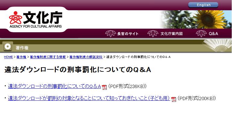22期秋谷501の1住人の独り言 272 文化庁から 違法ダウンロードについてのq a
