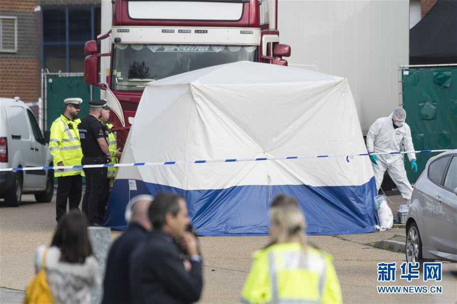 英国一卡车内发现39具遗体警察和法医人员现场搜查