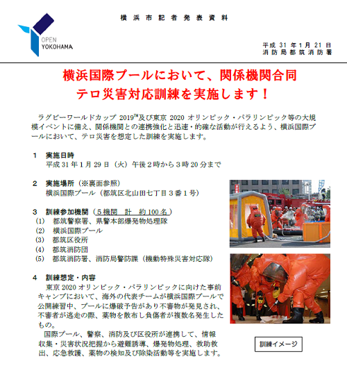 都筑区北山田の横浜国際プールで テロ災害対応訓練 1月29日実施 一般見学も可能 うちの街 都筑