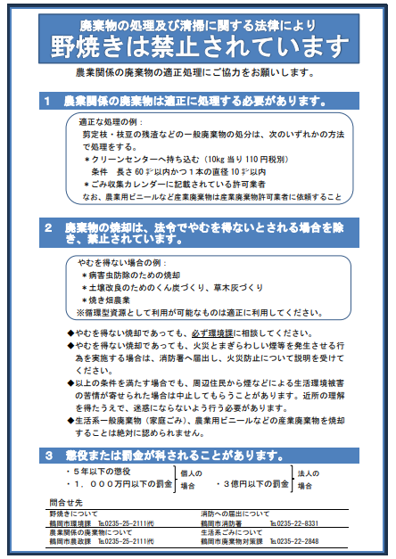野外焼却 野焼き について 天理市