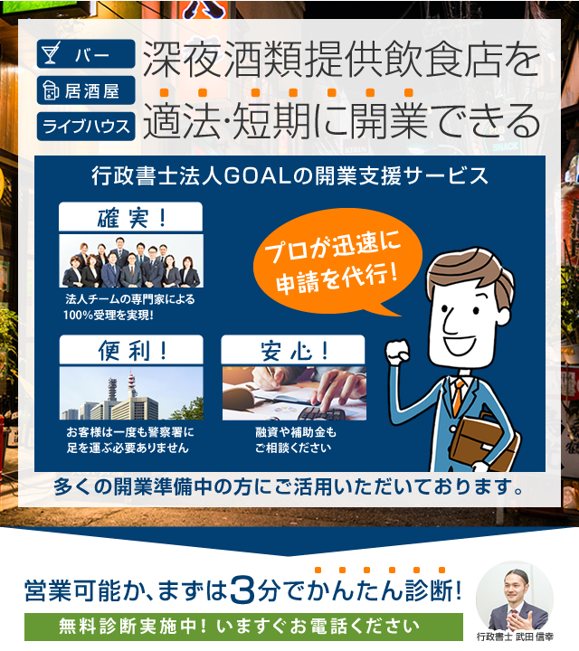 東京での深夜酒類提供飲食店営業の届出 報酬手数料58 000円 税別 バー スナック 居酒屋など