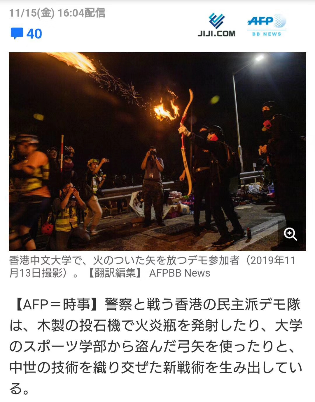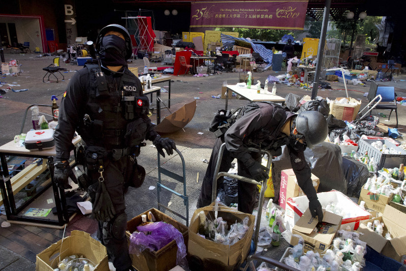 香港 警官隊が理工大に突入 デモ隊 火炎瓶や弓矢で抵抗 警察