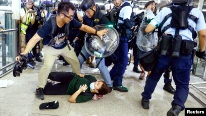 香港警署外的黑衣人與大陸信訪局裡的警察 圖 雲帆 時評 看中國網 移動版
