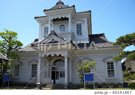 水色の外壁鮮やか 致道博物館旧鶴岡警察署庁舎 全国郷土紙連合