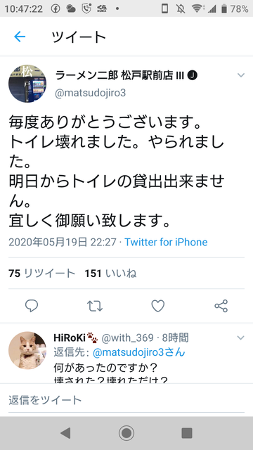 悲報 ラーメン二郎松戸店のトイレがコロナ自粛警察に破壊されてしまう まんさんコレクション