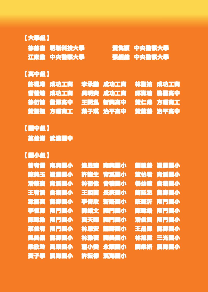 34 基礎雜誌354 期 大學組 徐慈宣明新科技大學黃雋穎中央警察大學 江家維中央警察大學張紹維中央警察大學 高中組 許珮琳成功工商李承勳成功工商林聖祐成功工商 留愷㠙成功工商吳明奕成功工商邱潔瑜桃園高中 徐衍誌龍潭高中王閔泓新興高中黃仁傳