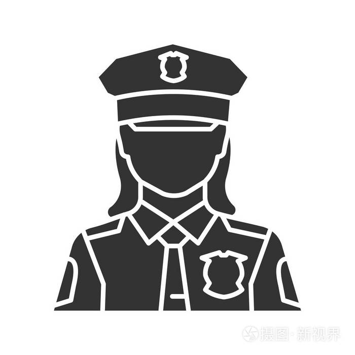 女警察字形图标 警官 警察剪影符号 负空间 矢量隔离插图插画 正版商用图片0fzli5 摄图新视界