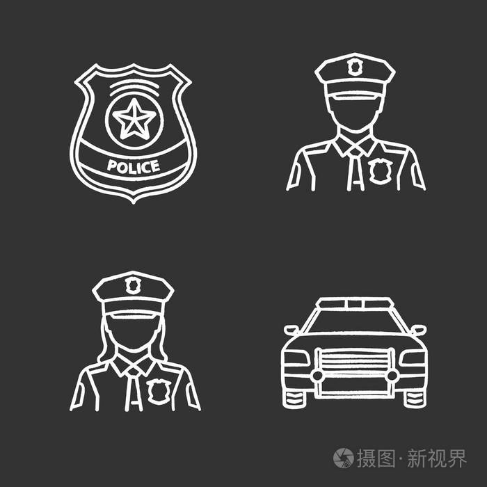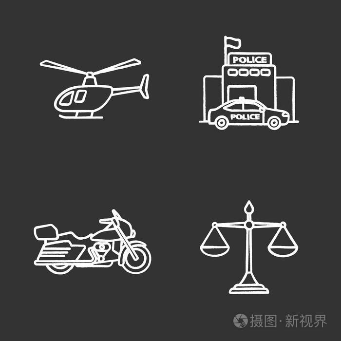 警察粉笔图标设置 直升机摩托车司法天平警察局 孤立矢量粉笔插图插画 正版商用图片11jtbu 摄图新视界