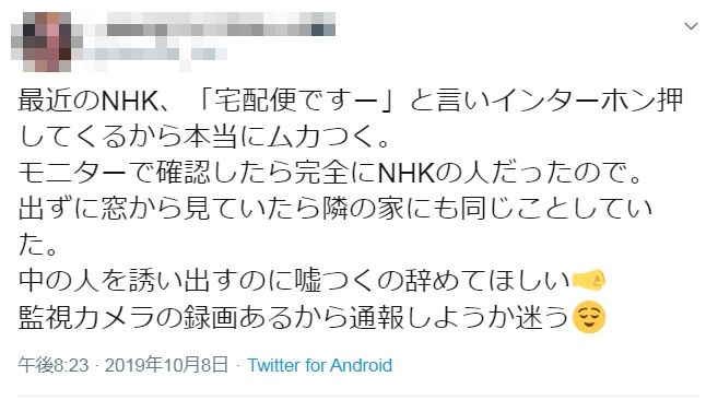 炎上 nhkの集金人がインターホンを50回連打して嫌がらせする様子が恐怖の真髄 動画あり ガールズちゃんねる girls channel
