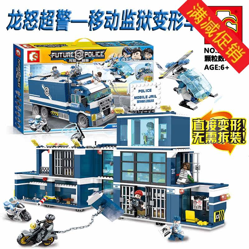 森寶拼裝積木sd9816龍怒超警移動監獄變形車人仔模型男孩益智玩具