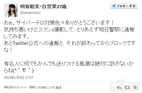 明坂聪美twitter收到不可描述图片骚扰遂报警 动漫星空